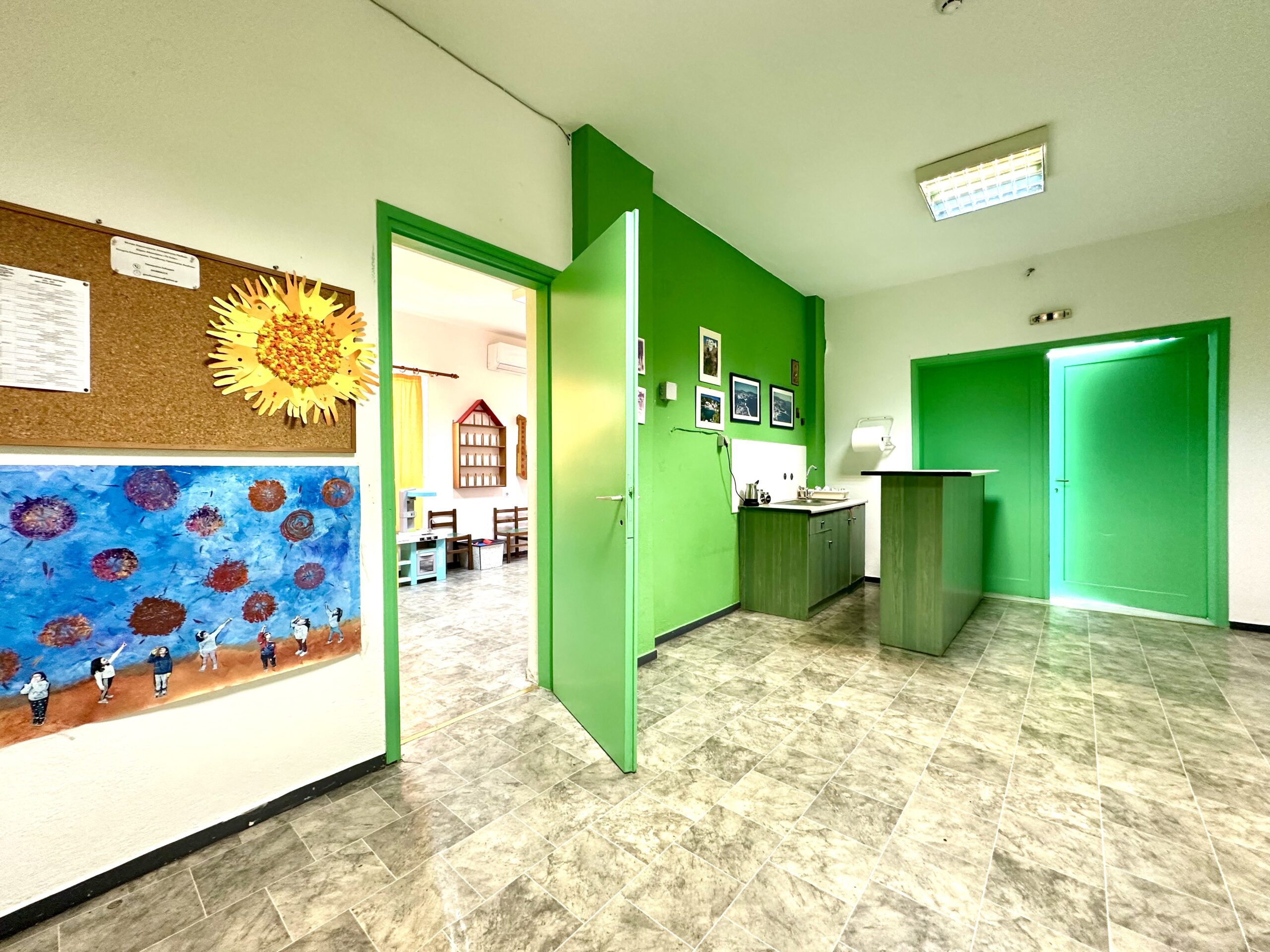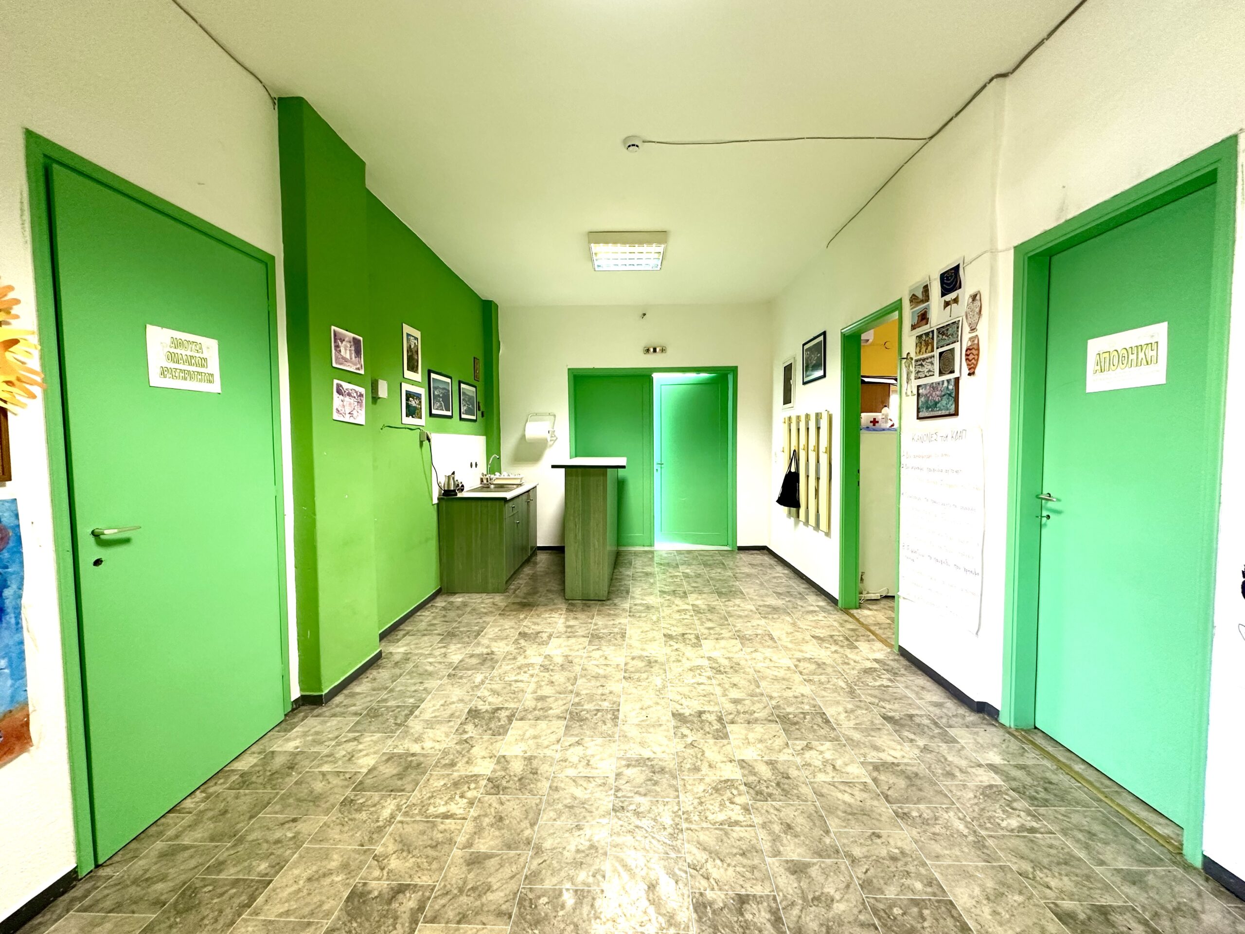 Οι αίθουσες του Κ.Δ.Α.Π. είναι κλιματιζόμενες και υπάρχει χώρος για ελεύθερη απασχόληση και επιτραπέζια παιχνίδια. Επίσης υπάρχει και δανειστική βιβλιοθήκη.