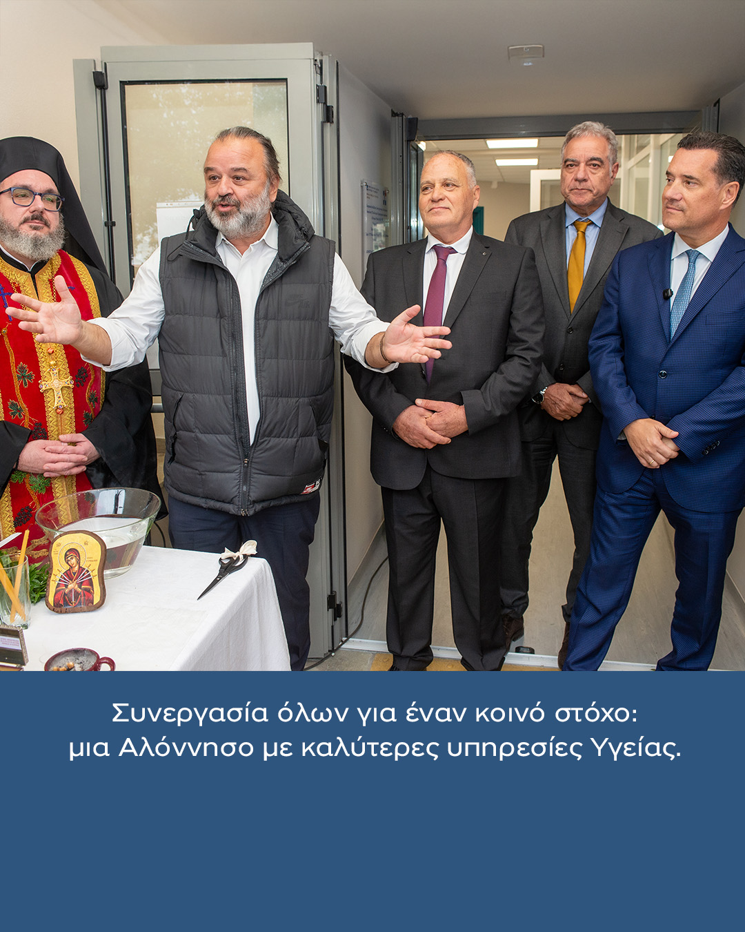 Σε ιδιαίτερα θετικό κλίμα πραγματοποιήθηκαν, την Τετάρτη 12 Νοεμβρίου 2025, τα εγκαίνια των αναβαθμισμένων εγκαταστάσεων του Πολυδύναμου Περιφερειακού Ιατρείου (ΠΠΙ) Αλοννήσου, παρουσία του Υπουργού Υγείας κ. Άδωνι Γεωργιάδη, του Διοικητή της 5ης ΥΠΕ Θεσσαλίας – Στερεάς Ελλάδας, κ. Φώτη Σερέτη, και του Επίτιμου Δημότη Αλοννήσου, Προέδρου της Seajets και της ΑΕΚ, κ. Μάριου Ηλιόπουλου.
