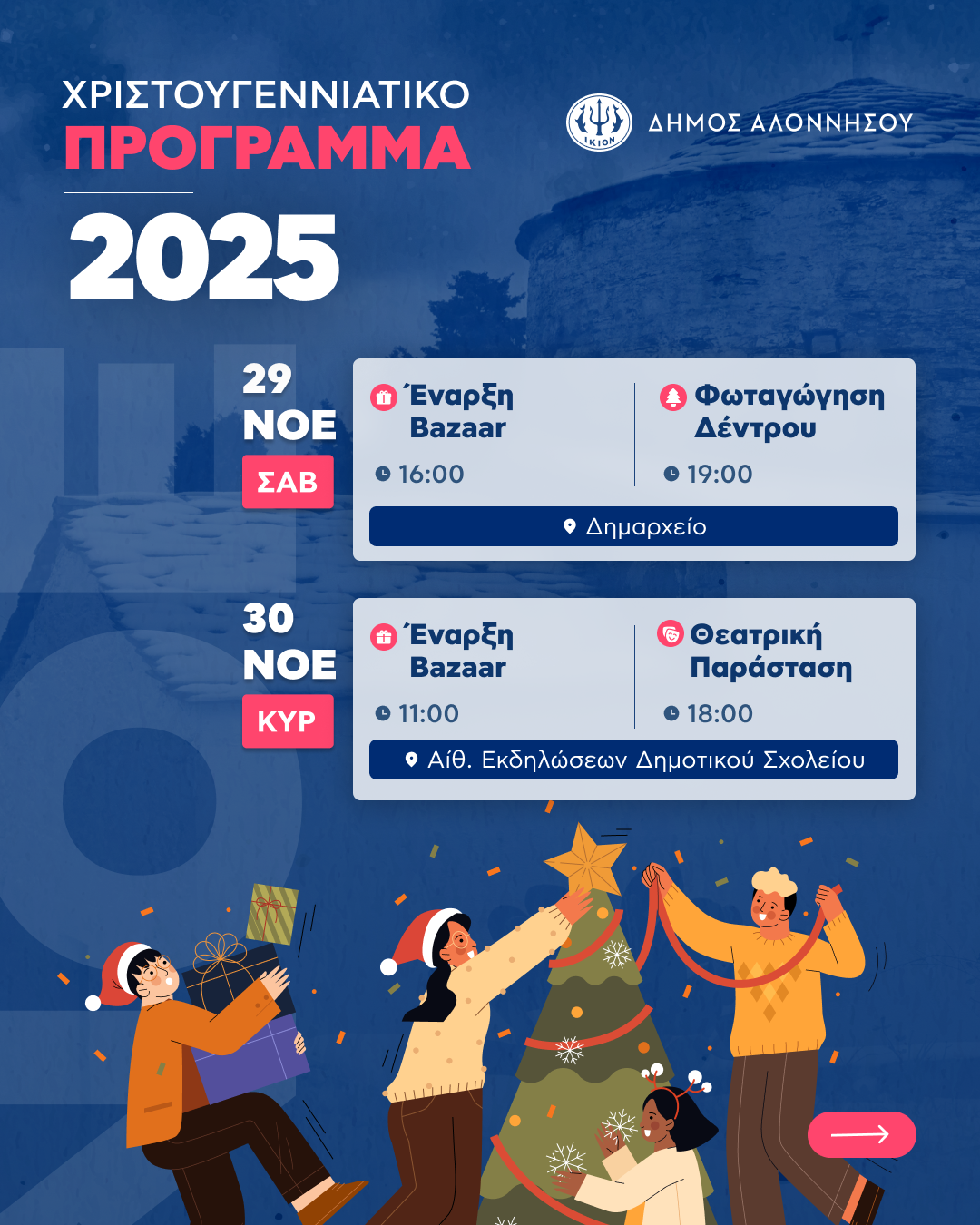 Χριστουγεννιάτικες Εκδηλώσεις 2025 στον Δήμο Αλοννήσου.