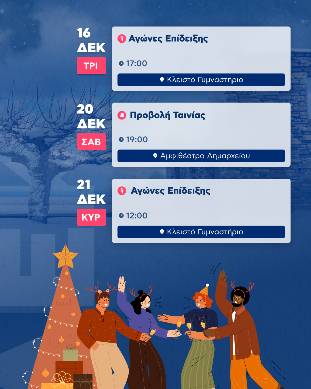 Τρίτη 16/12 ♂️Αγώνες Επίδειξης Κλειστό Γυμναστήριο