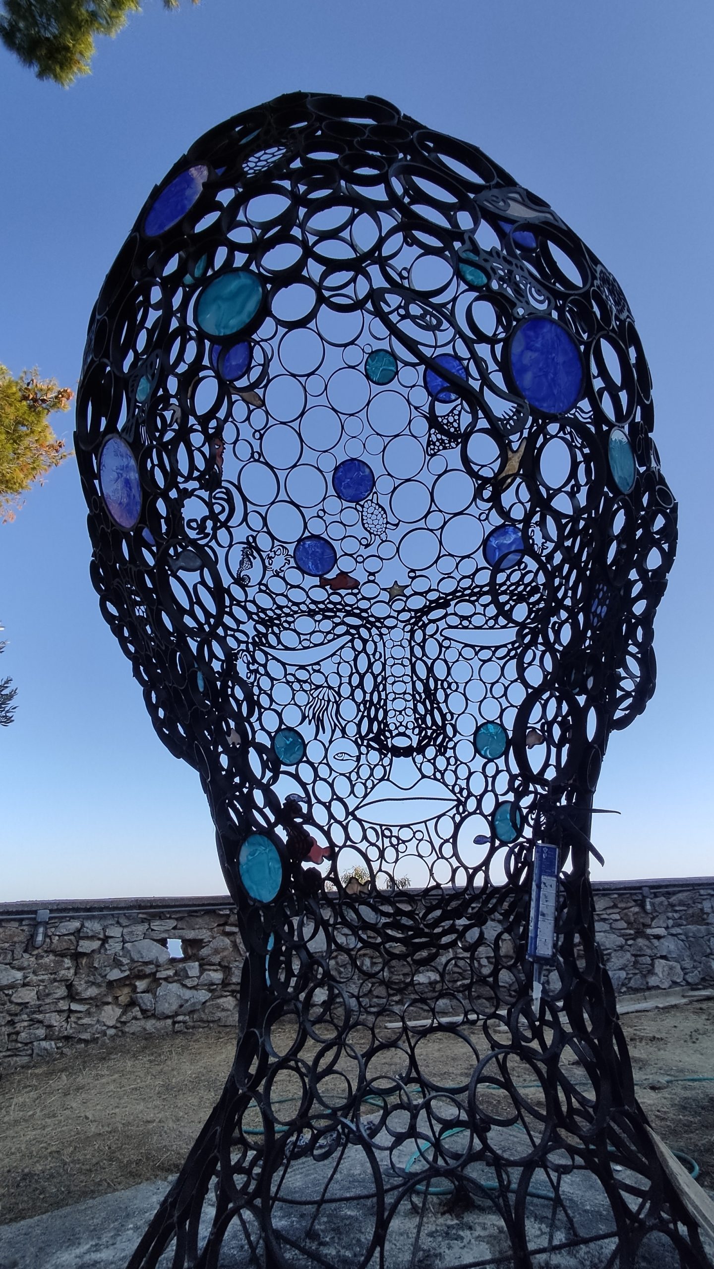 Μια γλυπτή κατασκευή, που προσκαλεί τον επισκέπτη σε μια συμβολική “είσοδο στον νου της φύσης”. Φτιαγμένο από ανακυκλωμένο μέταλλο, μωσαϊκά και γυαλί, δίνει νέο νόημα στον δημόσιο χώρο, τον μετατρέπει σε πεδίο στοχασμού και πράξης. - Life Synchrony (RAME13 | Δημοτικό Σχολείο Πατητηρίου)