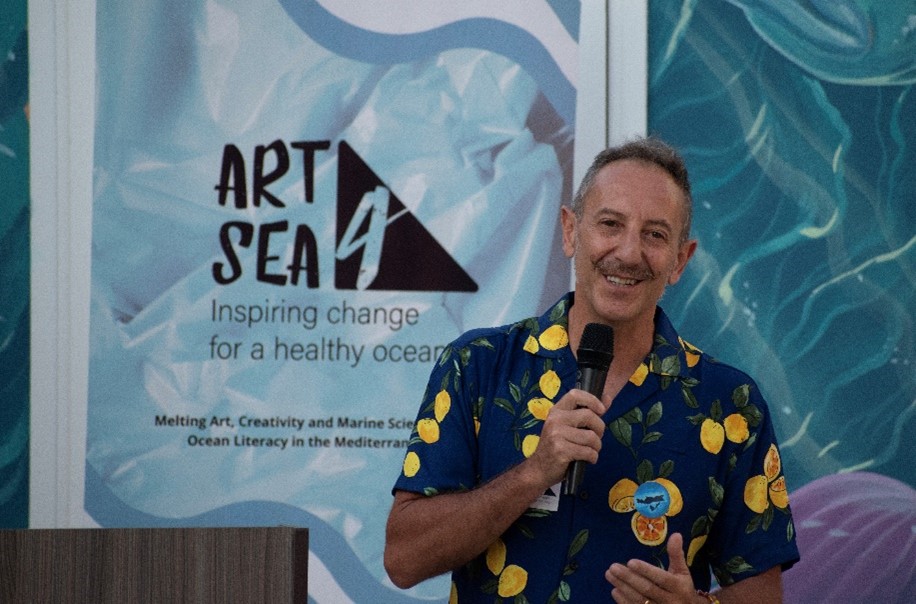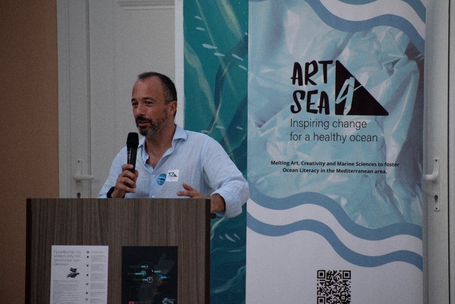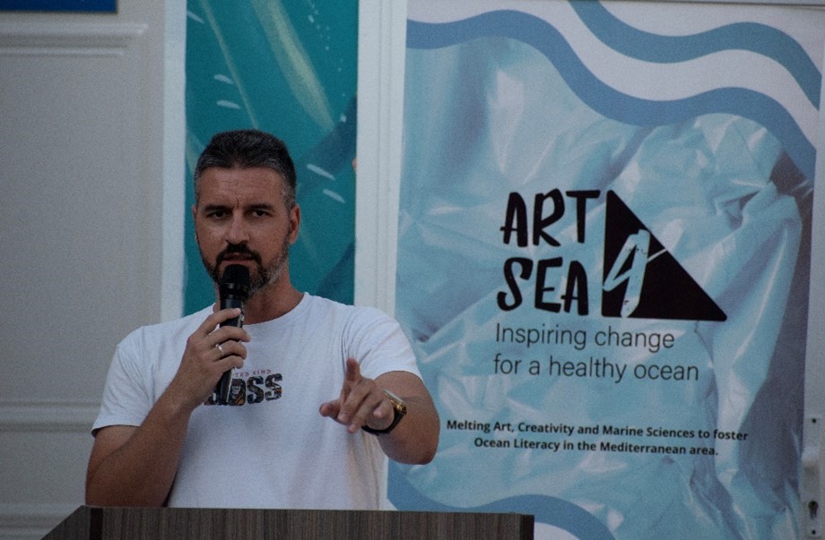 Την έναρξη της ημέρας κήρυξε ο Δήμαρχος Αλοννήσου, κ. Παναγιώτης Αναγνώστου, ο οποίος εξήρε τον ρόλο της τέχνης ως εργαλείο ενεργοποίησης της τοπικής κοινωνίας και ως μέσο επικοινωνίας των αξιών του νησιού. Ο ίδιος υπογράμμισε τη συμβολική δύναμη της φιλοξενίας ενός ευρωπαϊκού έργου πολιτισμού και βιωσιμότητας σε έναν τόπο-πρότυπο για την προστασία του θαλάσσιου περιβάλλοντος. Ακολούθησε ανάγνωση χαιρετισμών από τον Υφυπουργό Κλιματικής Κρίσης και Βουλευτή Ν. Μαγνησίας της Νέας Δημοκρατίας, κ. Χρήστο Τριαντόπουλο και τον Υφυπουργό Ψηφιακής Διακυβέρνησης και Βουλευτή Ν. Μαγνησίας της Νέας Δημοκρατίας, κ. Χρήστο Μπουκώρο, οι οποίοι εξέφρασαν τη στήριξή τους σε πρωτοβουλίες που συνδέουν τη βιώσιμη ανάπτυξη, την καινοτομία και τον πολιτισμό σε νησιωτικές περιοχές. Στη συνέχεια, ο κ. Άγγελος Μαγκλής, ιδρυτής της Ατλαντίς Συμβουλευτικής, πήρε τον λόγο, ευχαριστώντας θερμά όλους τους εμπλεκόμενους, τους συνεργάτες, τους καλλιτέχνες και το κοινό που αγκάλιασε με τόσο ενθουσιασμό την έκθεση και ανέφερε, ότι η Αλόννησος είναι κάτι πολύ περισσότερο από τόπος υλοποίησης ενός έργου, είναι πηγή έμπνευσης. Ο κ. Fabio Bruno, συντονιστής του έργου, τόνισε την έννοια της ψηφιακής έκθεσης του ART4SEA, υπογραμμίζοντας τον ρόλο των νέων μέσων στην προσβασιμότητα και τη διάδραση με το κοινό. Δεν παρέλειψε να εκφράσει τη βαθιά του συγκίνηση και εκτίμηση για την Αλόννησο, τονίζοντας ότι η σχέση του με το νησί έχει πλέον εξελιχθεί από επαγγελματική σε προσωπική.
